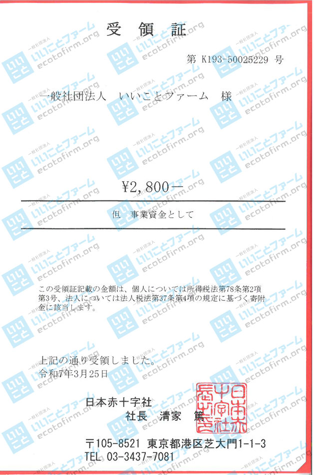 2025年2月中に届いた段ボール箱1箱につき100円を、下記団体へ 寄付 いたしましたのでご報告いたします。