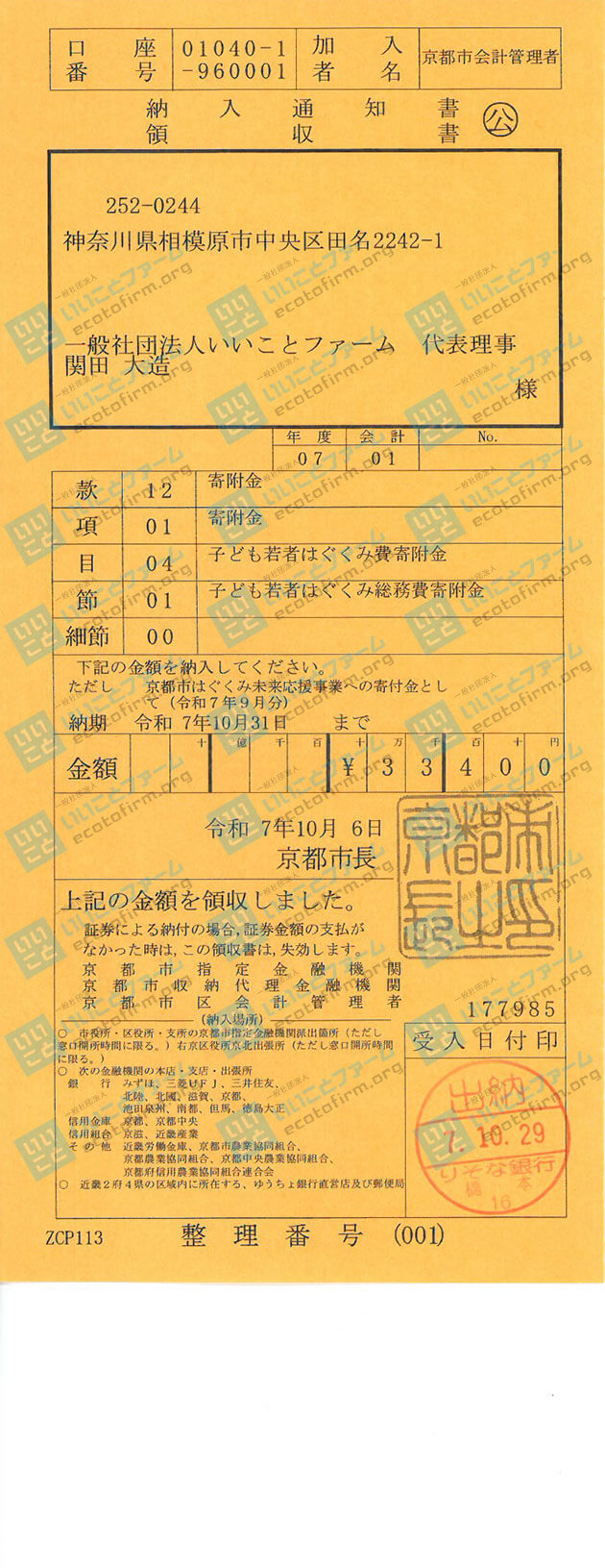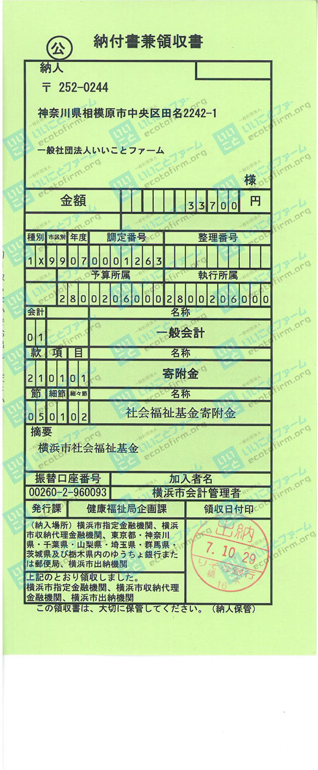 寄付金受領証明書