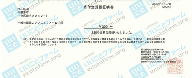 2025年9月中に届いた段ボール箱1箱につき100円を、下記団体へ 寄付 いたしましたのでご報告いたします。