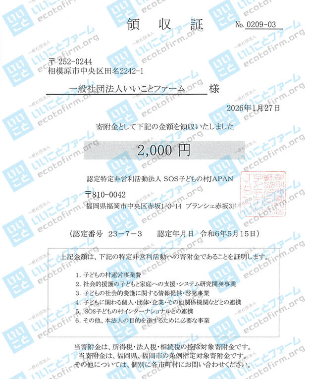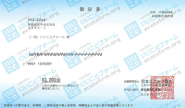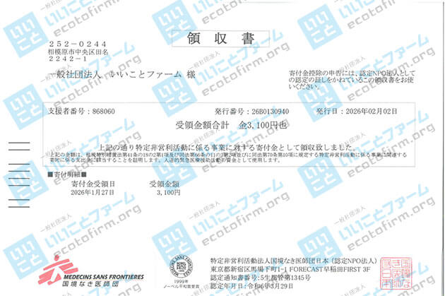 2025年12月中に届いた段ボール箱1箱につき100円を、下記団体へ 寄付 いたしましたのでご報告いたします。