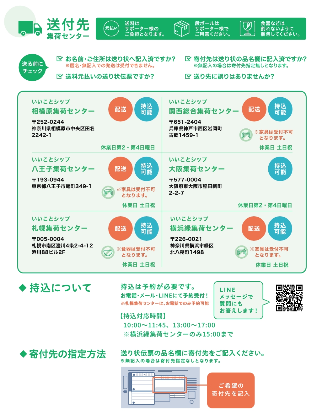 また、お送りいただいた 段ボール1箱につき100円 を、選択していただいた寄付先へ 寄付 いたします。