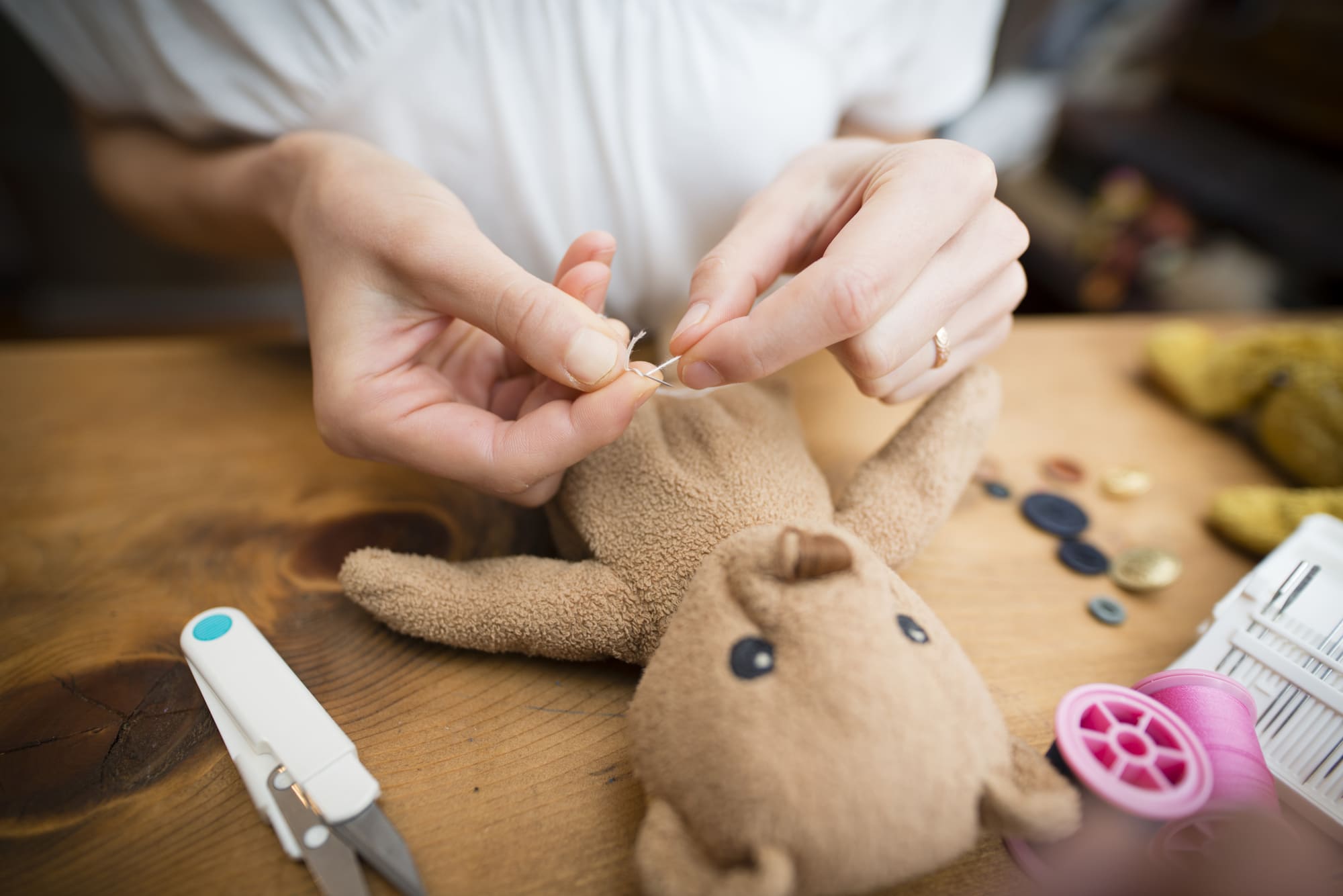 長年の使用で中綿が偏ったぬいぐるみは、クリーニングと詰め直しで抱き心地が戻ります。形をわずかに整えればクッションや抱き枕として第二の役目を果たし、顔のパーツを外して布小物に仕立て直すと、元の面影を宿した暮らしの相棒に変わります。