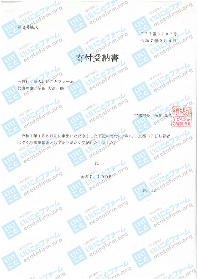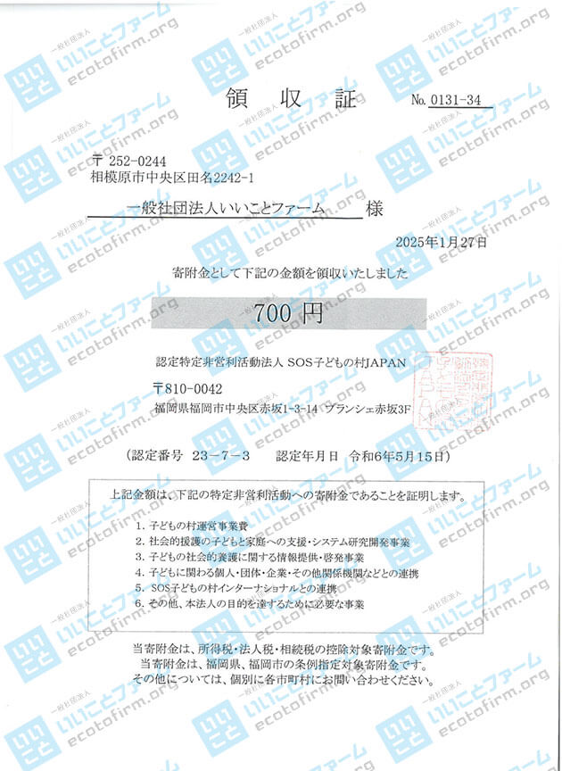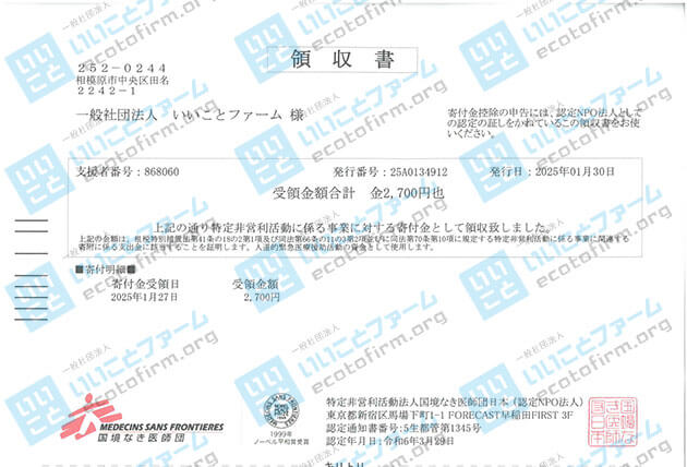 2024年12月中に届いた段ボール箱1箱につき100円を、下記団体へ 寄付 いたしましたのでご報告いたします。