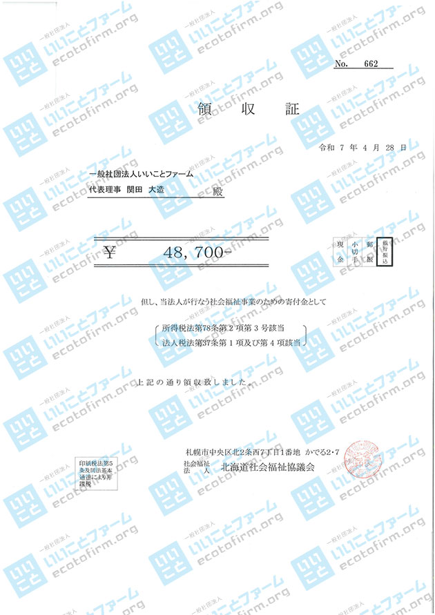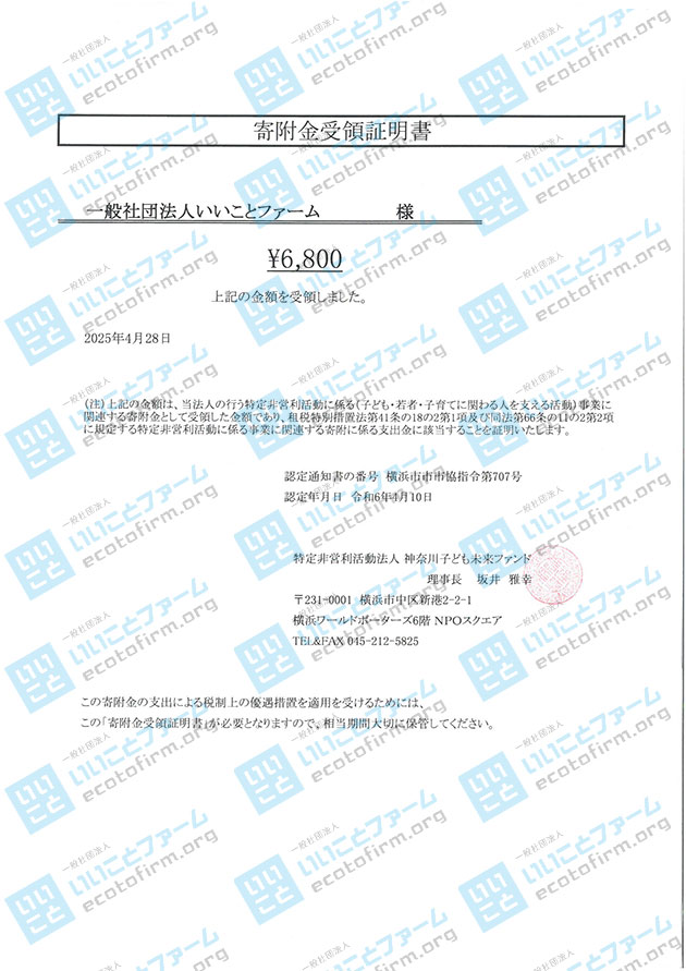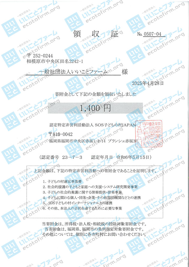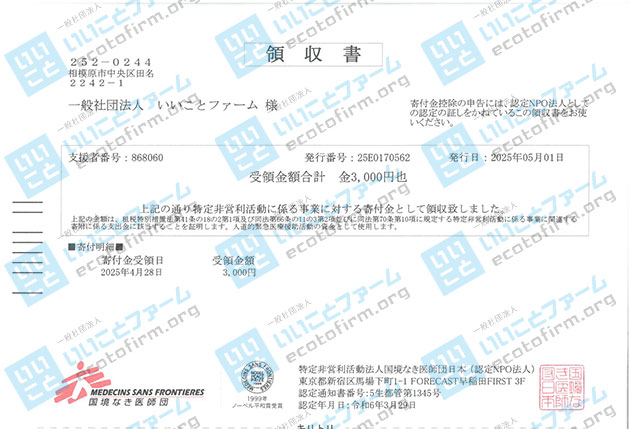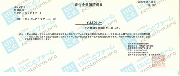 2025年3月中に届いた段ボール箱1箱につき100円を、下記団体へ 寄付 いたしましたのでご報告いたします。