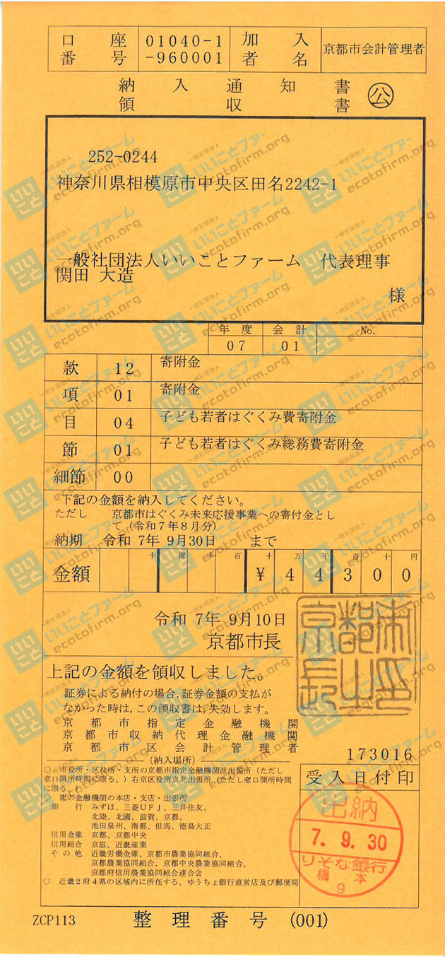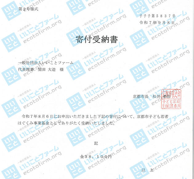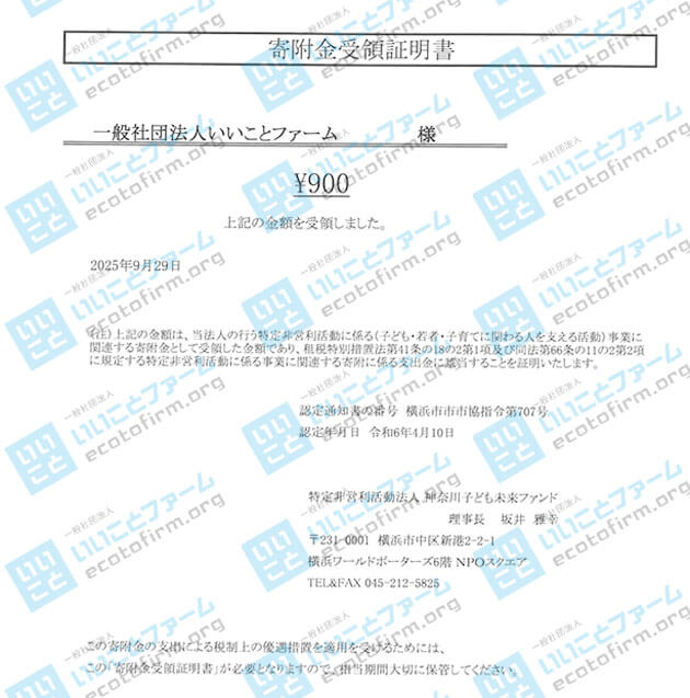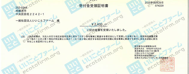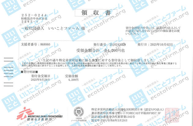 2025年8月中に届いた段ボール箱1箱につき100円を、下記団体へ 寄付 いたしましたのでご報告いたします。