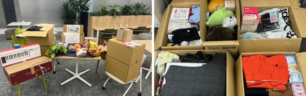 本社内の複数部署が協力し合いながら寄付品を集め、いいとこシップさんに寄付させていただきました。