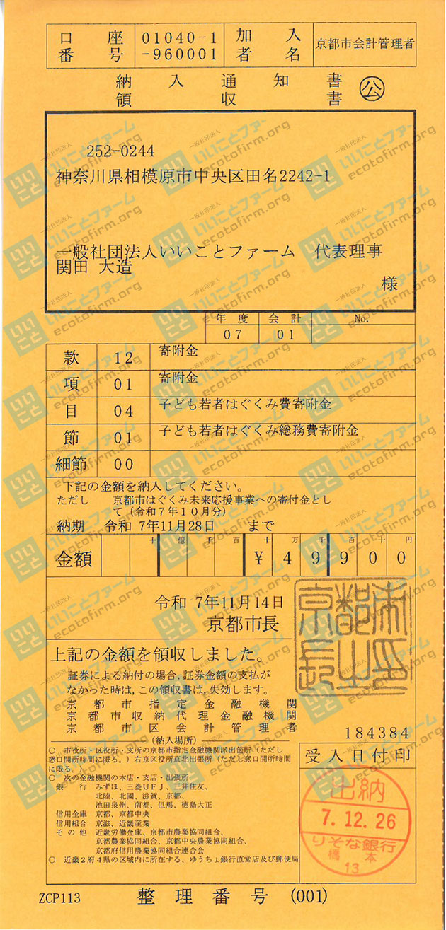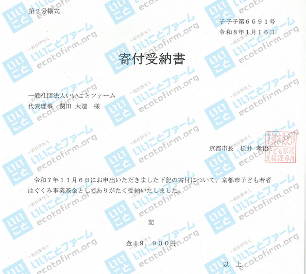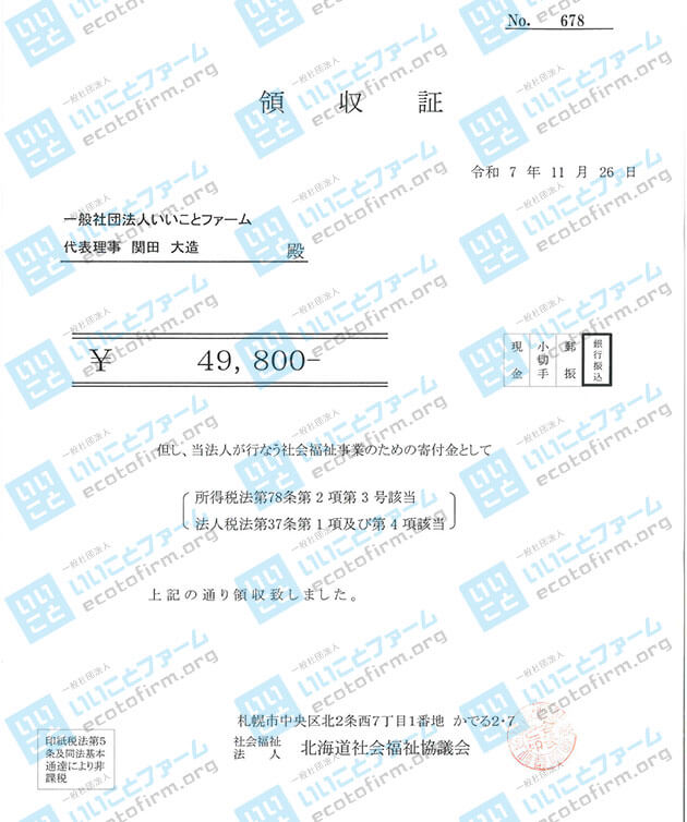 2025年10月中に届いた段ボール箱1箱につき100円を、下記団体へ 寄付 いたしましたのでご報告いたします。