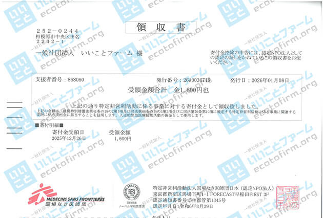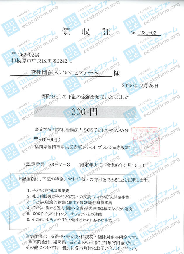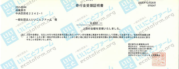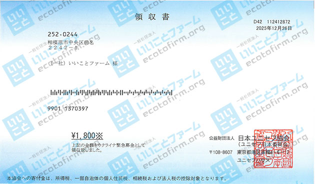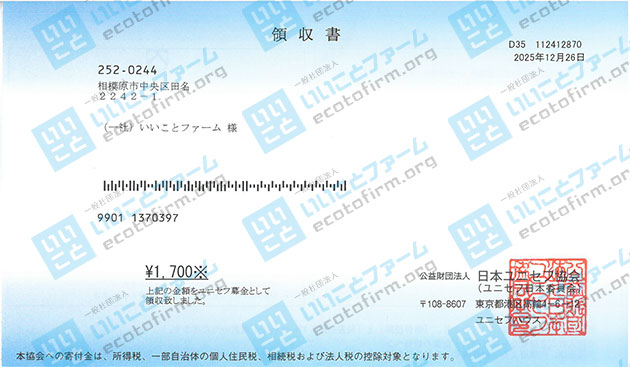 2025年11月中に届いた段ボール箱1箱につき100円を、下記団体へ 寄付 いたしましたのでご報告いたします。