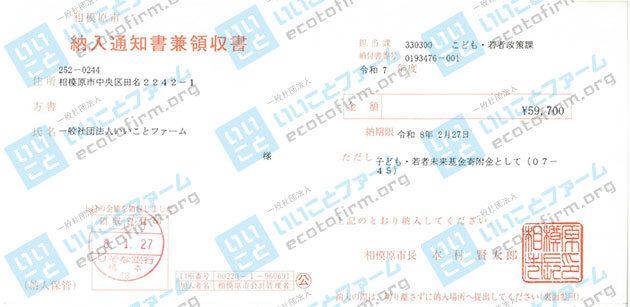 2025年12月中に届いた段ボール箱1箱につき100円を、下記団体へ 寄付 いたしましたのでご報告いたします。